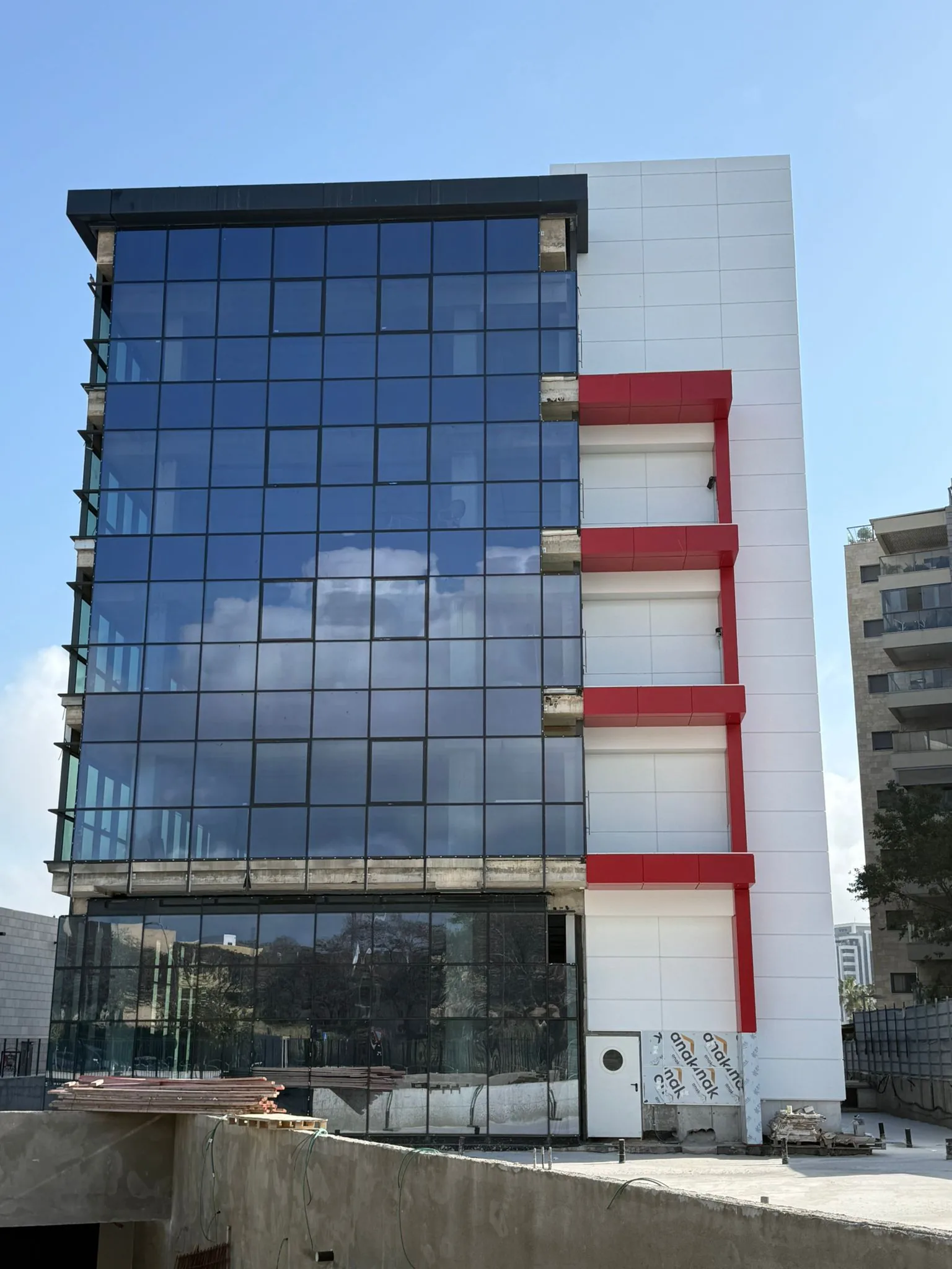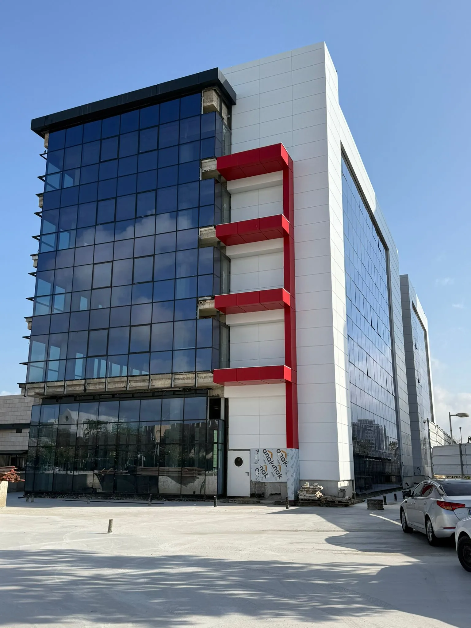 ביצוע עבודות קירות מסך וחיפוי אלומיניום בפרויקט המרכז הרפואי באור עקיבא.